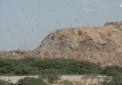 Nördlich von Delhi befindet sich ein Riesenberg. Von weitem erinnert er an den Ayers Rock in Australien. Wenn man aber näher kommt, sieht man eine Vielzahl an groβen Greifvögeln, die darüber kreisen und man kann erkennen, dass es sich nicht um Stein, Fels oder bewachsenes Land handelt. Man kann die bunte Farbenvielfalt der Lebensmittelindustrie und ihre Verpackungsmaterialien ausmachen.